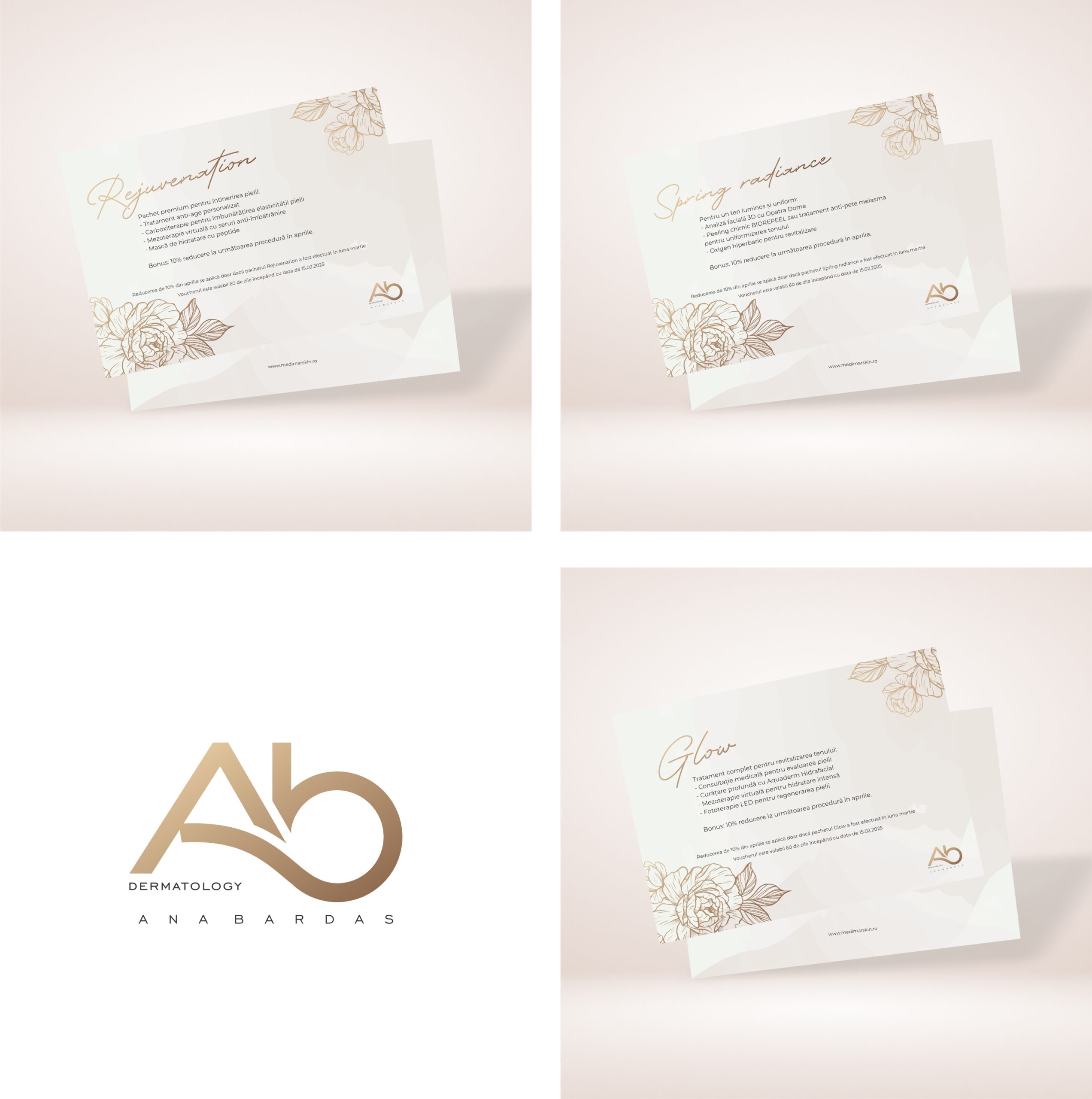 - March Glow – un ritual complet de revitalizare, ce include Aquaderm Hidrafacial, mezoterapie virtuală și fototerapie LED, pentru o piele hidratată și regenerată.